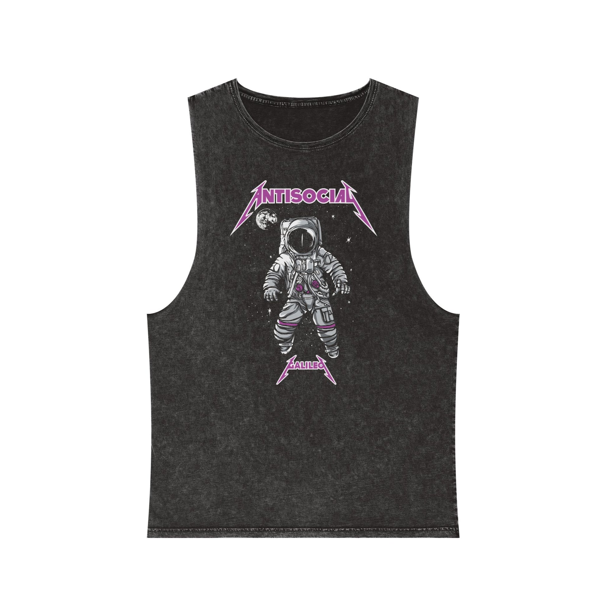 AntiSocial World Tour Graphic finished on a sleeveless stonewash tee.